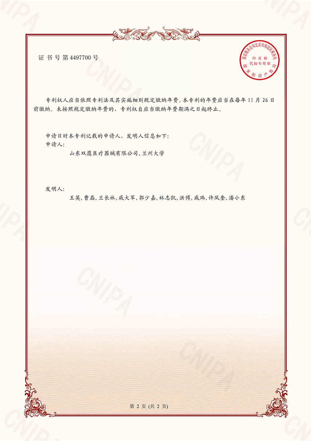 山東雙鷹多年來扎根于醫(yī)療器械行業(yè)領域,一直積研發(fā)探索,努力鉆研實踐,不斷強化科技成果轉化,公司獲得的這些成果為今后的發(fā)展積蓄了前進的動力,提供了強有力的科技支撐。山東雙鷹必將抓住發(fā)展機遇,創(chuàng)技術服務企業(yè),為社會創(chuàng)造財富,為客戶創(chuàng)造價值,為員工創(chuàng)造未來!