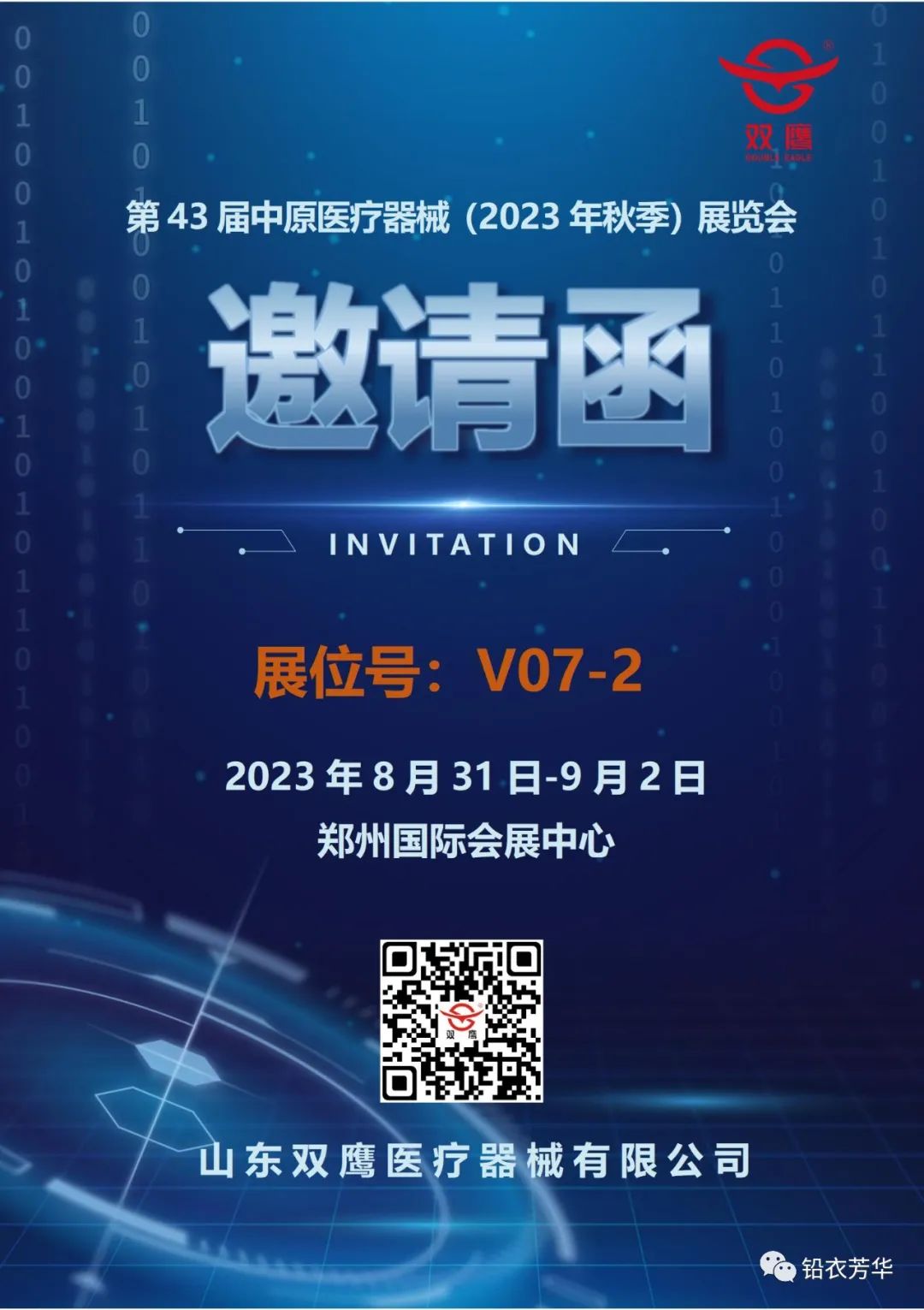 2023年8月31日-9月2日,第43屆中原醫(yī)療器械(2023年秋季)展覽會(huì)在鄭州國際會(huì)展中心隆重舉行,屆時(shí),雙鷹醫(yī)療在V07-2號展位恭候您的光臨!