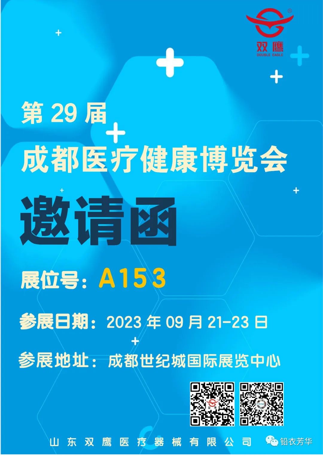 2023年9月21日-23日,第29屆成都醫(yī)療健康博覽會在成都世紀(jì)城國際展覽中心隆重舉行,屆時雙鷹醫(yī)療在7號館A153號展位恭候您的光臨!