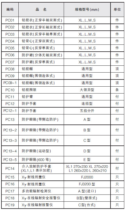 醫(yī)用X射線防護(hù)系列制品,簡稱X射線防護(hù)系列制品,材料由天然橡膠、黃丹粉經(jīng)加工外包布制作而成。防護(hù)系列制品鉛當(dāng)量:0.25mmpb、0.35mmpb、0.5mmpb。鉛膠衣就是X射線防護(hù)系列中的一種。