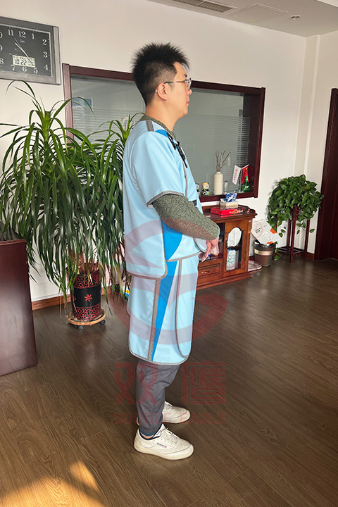 在進(jìn)行放射性診療檢查時(shí),要檢查X射線防護(hù)服附屬部件是否齊全,是否符合自己所需的鉛當(dāng)量,然后再進(jìn)行操作。