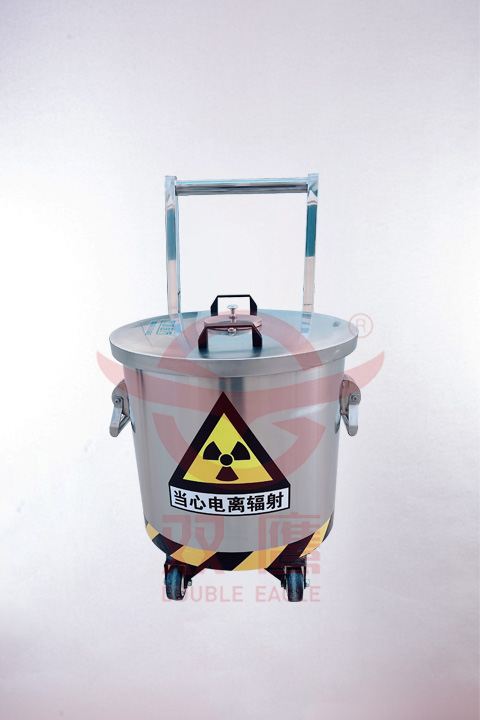 客戶特殊定制放射廢物儲存桶。直徑、高度均為400毫米。鉛當量4mmpb。 產(chǎn)品底部配4個腳輪,一側(cè)加推桿車,移動方便。小蓋便于隨時投放廢物放進桶內(nèi)。大蓋用于廢物塑料袋和廢物一起倒掉。放射廢物儲存桶,讓危害無處可逃。