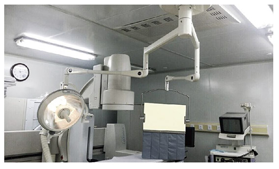 工作人員操作前,首先檢查防護(hù)簾內(nèi)外表面的包布是否牢固,附屬的配件是否牢固,檢查標(biāo)尺上的鉛當(dāng)量是否符合自己所需的當(dāng)量,檢查完畢后,把防護(hù)簾固定在手術(shù)床邊,然后擰緊螺母進(jìn)行操作。